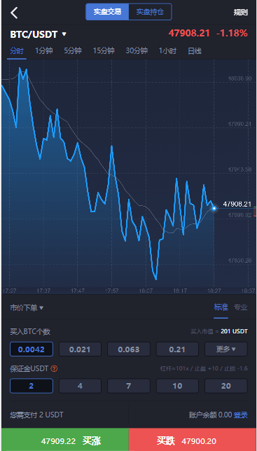 支持多空双向交易,保证金低至 1%,收益放大 100 倍。