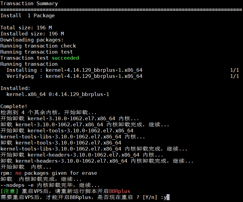 3.安装成功,重启VPS之后我们重新连接服务器。输入下列指令来启用其BBR plus。