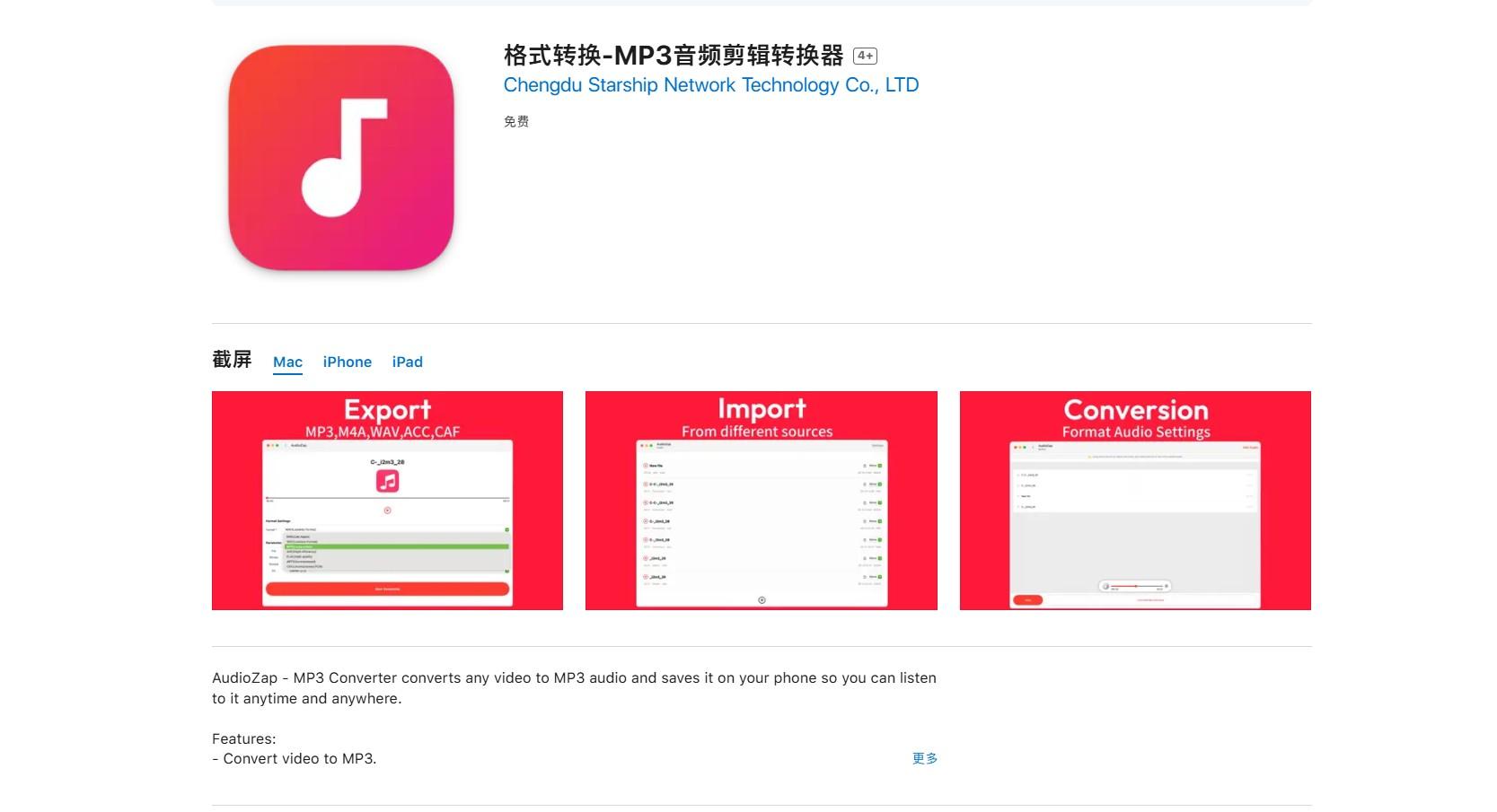AudioZap是一款免费的音频格式转换工具,支持WAV、MP3、CAF、FLAC和ACC格式相互转换。该工具现在可以在iPhone、iPad和Mac上使用,支持包括MP3、WAV、M4A、CAF、FLAC在内的多种音频格式。AudioZap不仅可以将视频转换为音频文件用于离线收听,还可以用于项目中的音频剪辑编辑。