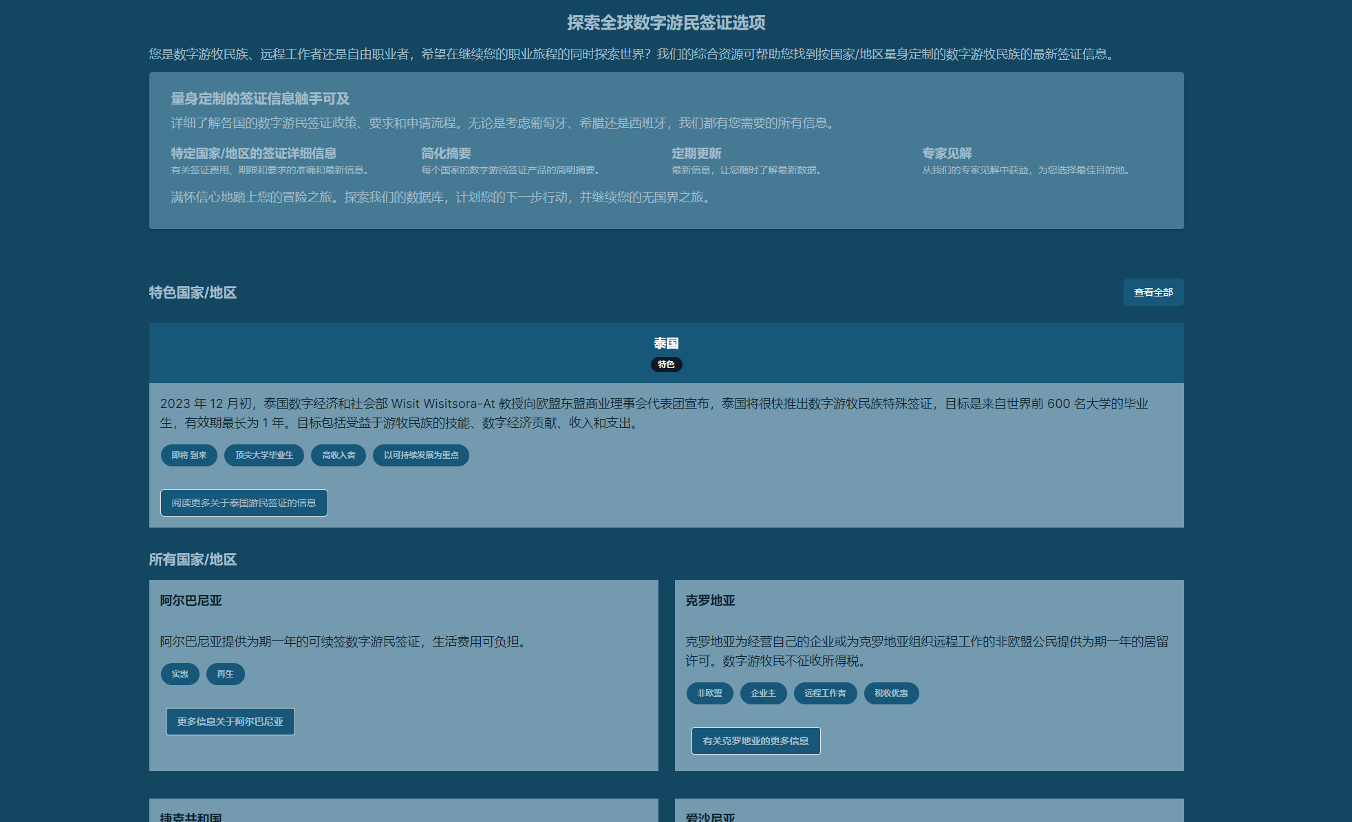 NomadVisa是一个全球数字游民签证大全网站,如果你是一位数字游民、远程工作者或自由职业者,希望在继续职业生涯的同时探索世界吗?这个全球数字游民签证大全网站可帮助你找到针对数字游民的最新签证信息,可以根据国家定制,也可以订阅更新,包括有关签证费用、期限和要求等等准确最新信息。