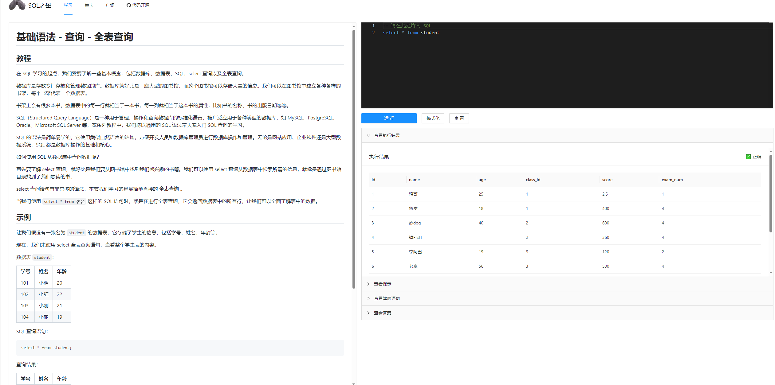 资源库 » SQL 之母-免费的闯关式 SQL 自学教程网站