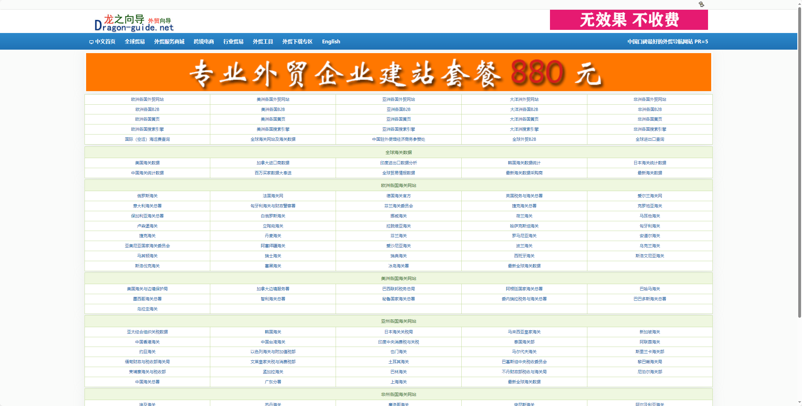 Dragon Guide(龙之向导)是一个全球常用海关网站集合的导航网站,专门收集全球常用的海关网站、全球海关数据网站等等,为外贸用户提供简单便捷的导航服务,是数千万外贸人的学习、开拓国际客户的外贸导航网站。