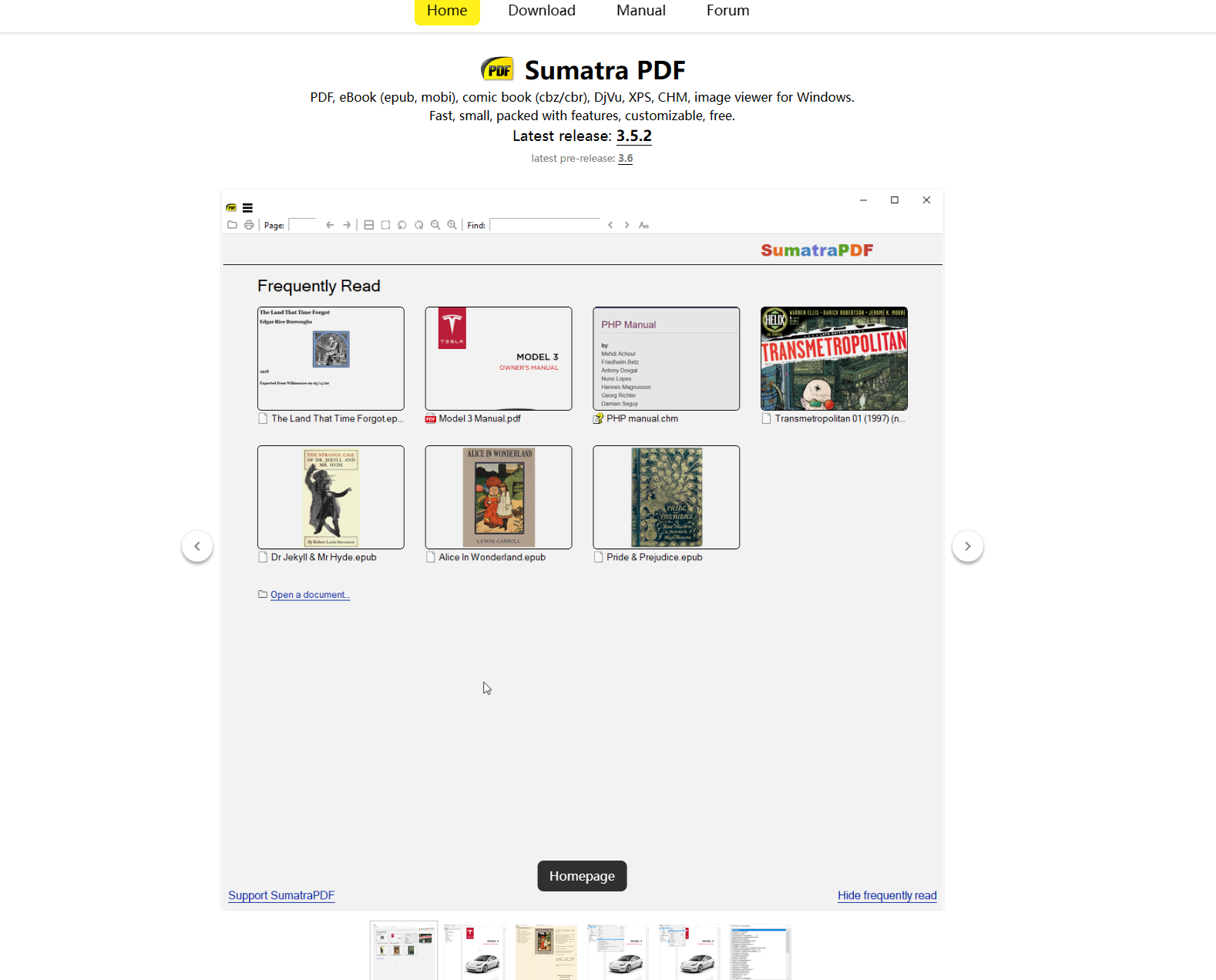 Sumatra PDF是一款免费开源 PDF 阅读器,快速 小巧且功能齐全,支持PDF、电子书(epub、mobi)、漫画书(cbz/cbr)、DjVu、XPS、CHM等等格式,体积小,启动速度快,界面简约,支持Windows 11、Windows 10、Windows 8、Windows 7、Vista系统。